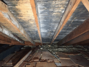 - Roof shingle, sheathing, and siding decay– Possible cause: Poor attic ventilation.
